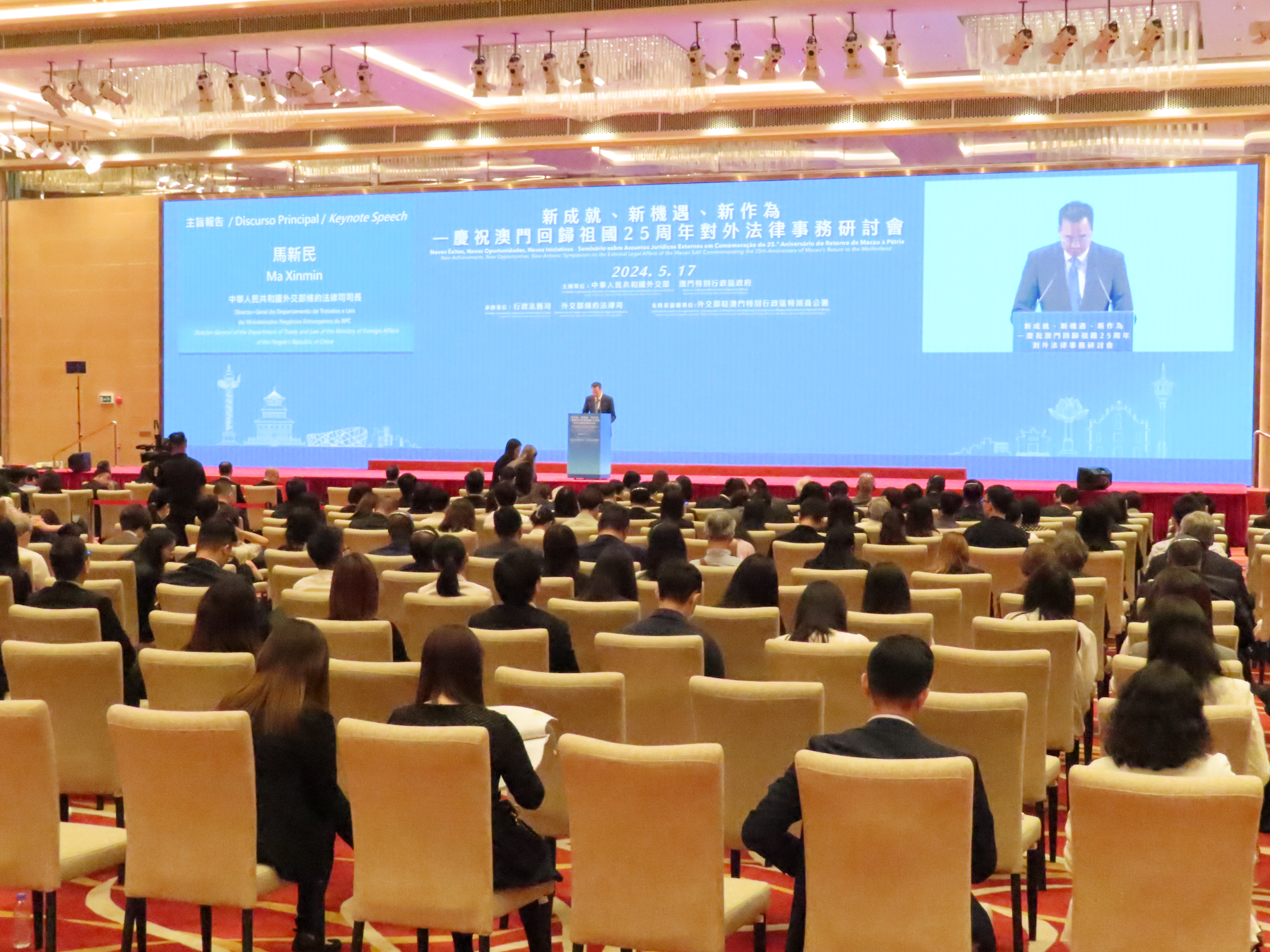 【特訊】為慶祝澳門回歸祖國25周年,由外交部、特區政府主辦,外交部條約法律司、行政法務司承辦的「新成就、新機遇、新作為——慶祝澳門回歸祖國25周年對外法律事務研討會」昨在澳舉行,外交部部長助理苗得雨就開展澳門對外法律工作提出三點意見,一是強基固本,夯實《憲法》和《基本法》確定的憲制秩序;二是開拓創新,服務國家涉外法治建設和高水準開放;三是發揮特長,助力國家外交和全球治理。期望專家學者透過研討會,圍繞做好澳門特區對外法律事務建言獻策,共為澳門「一國兩制」成功實踐作出貢獻。